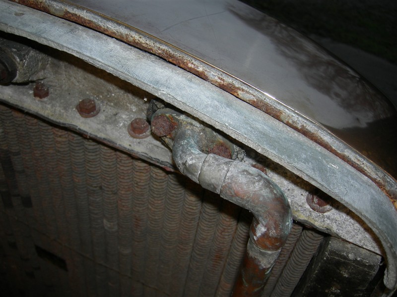 The radiator header tank overflow pipe had been replaced at one time by a crude pipe made from domestic plumbing copper tube and fittings