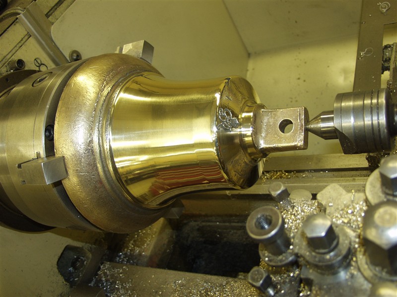 A replacement in thick wall brass pipe with original pattern flanges looks far more appropriate