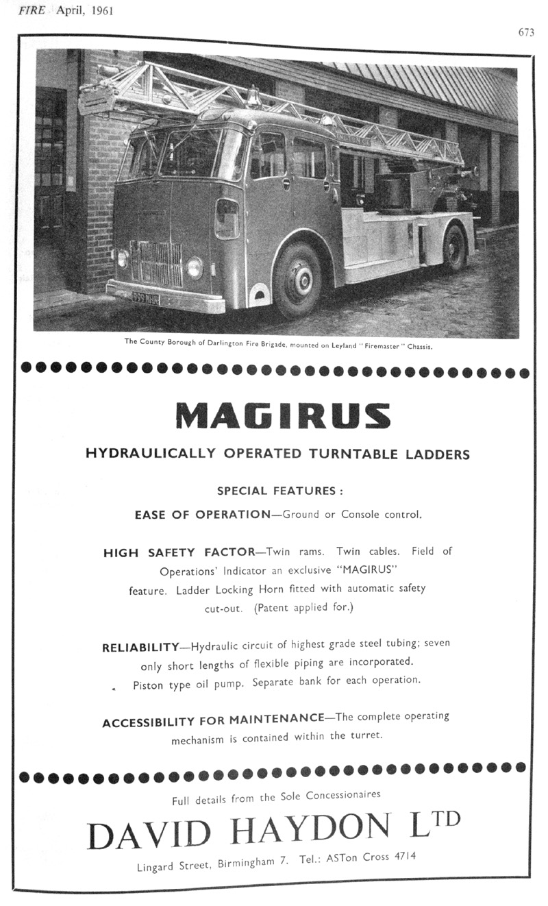 The Firemaster appeared in advertisements from David Haydon the Magirus sole concessionaires in the UK.