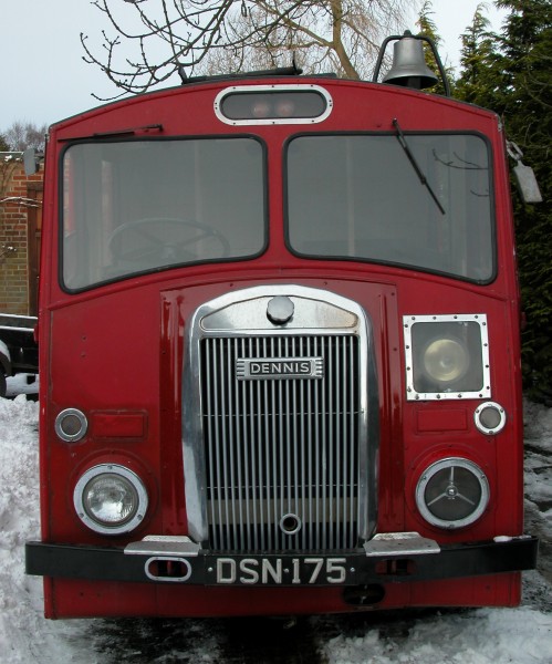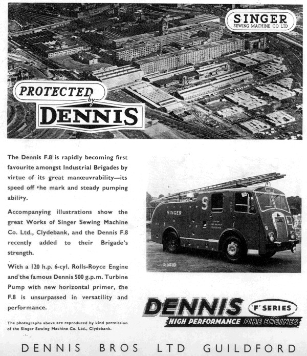 The above advertisement from the front cover of the November 1953 Edition of the 'Fire' magazine really sums up the history of DSN175. Whilst at Singer it was involved in a front end collision. Rather than replace the damaged window frames with original items, the front glass was inserted into rubber beading resulting in a slightly non-standard appearance.