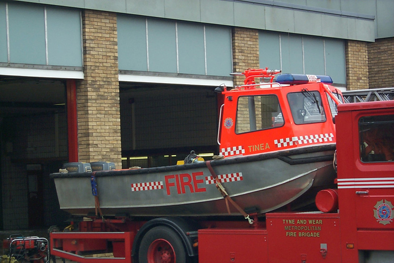 B759GCN started life as a Dennis SS water tender before conversion to a boat transporter for the 'Tinea' fire boat. This combination was stationed at the Fossway fire station in the East End of Newcastle, and left Brigade ownership on the 1st. Decmeber 2006. The boat was invariably launched into the Tyne at Spillers Quay. A TL is required to lift the boat from the transporter and then lower it into the river. The call sign for the transporter (and its replacement) is F08 whilst that for the boat is F09.