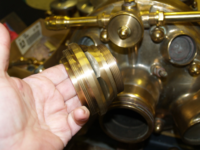 This is the coupling adapter in place. The female instantaneous hose coupling still needs to be polished.