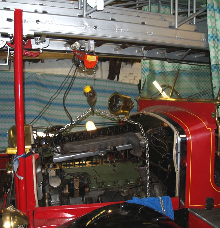 Am American treatment called 'Seafoam' is meant to the the magic potion for stuck rings, but two cans later there was no improvement. This was then followed by a daily dose of diesel into the cylinder. The sump was totally removed at this time and the diesel could be seen dribbling past the piston. So off came the head. Being a TL the ladder on GXA95 provided a ready made lifting point for the winch.