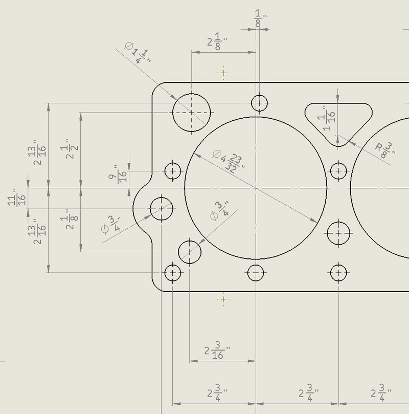 It was therefore decided to produce an accurate template CNC machined from aluminium plate which could then be handed over tto the gasket maker. Just producing the drawing took considerable time even though we could guess that all dimensions would be fractional inches perhaps with a placement resolution of 1/32".